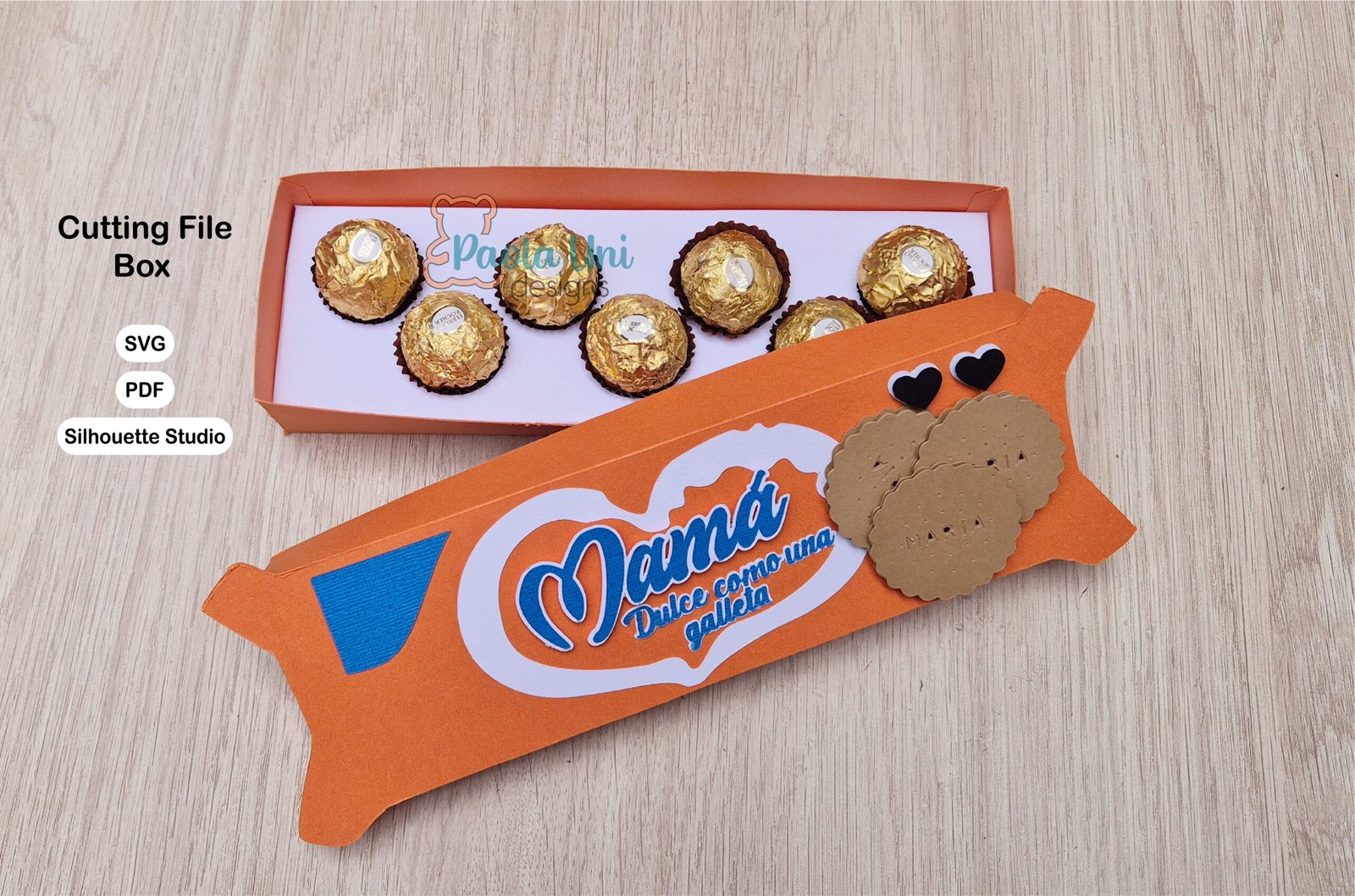 Archivo para recortar y armar caja en forma de galleta María con soporte de chocolates
